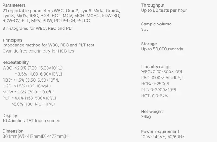 Efficient Blood Testing: Provides fast results with 3-part analysis.
